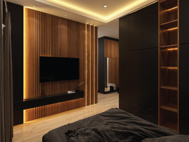 Our design approach for this condominium embraces a modern industrial concept, seamlessly blending white walls and grey wooden panels with warm Muji-style wooden cabinetry. This balanced combination creates a chic and inviting environment, perfectly capturing the essence of modern industrial living.